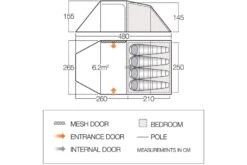 Durable Weathershield 68D fabric and the latest Air Frame technology ensure the Hayling AIR remains a family favourite. Doors on the left-hand side and front panel feature mesh screens to maintain airflow and the front canopy provides valuable outdoor living space. Low and high ventilation points and darkened bedrooms ensure you’re comfortable whatever the weather