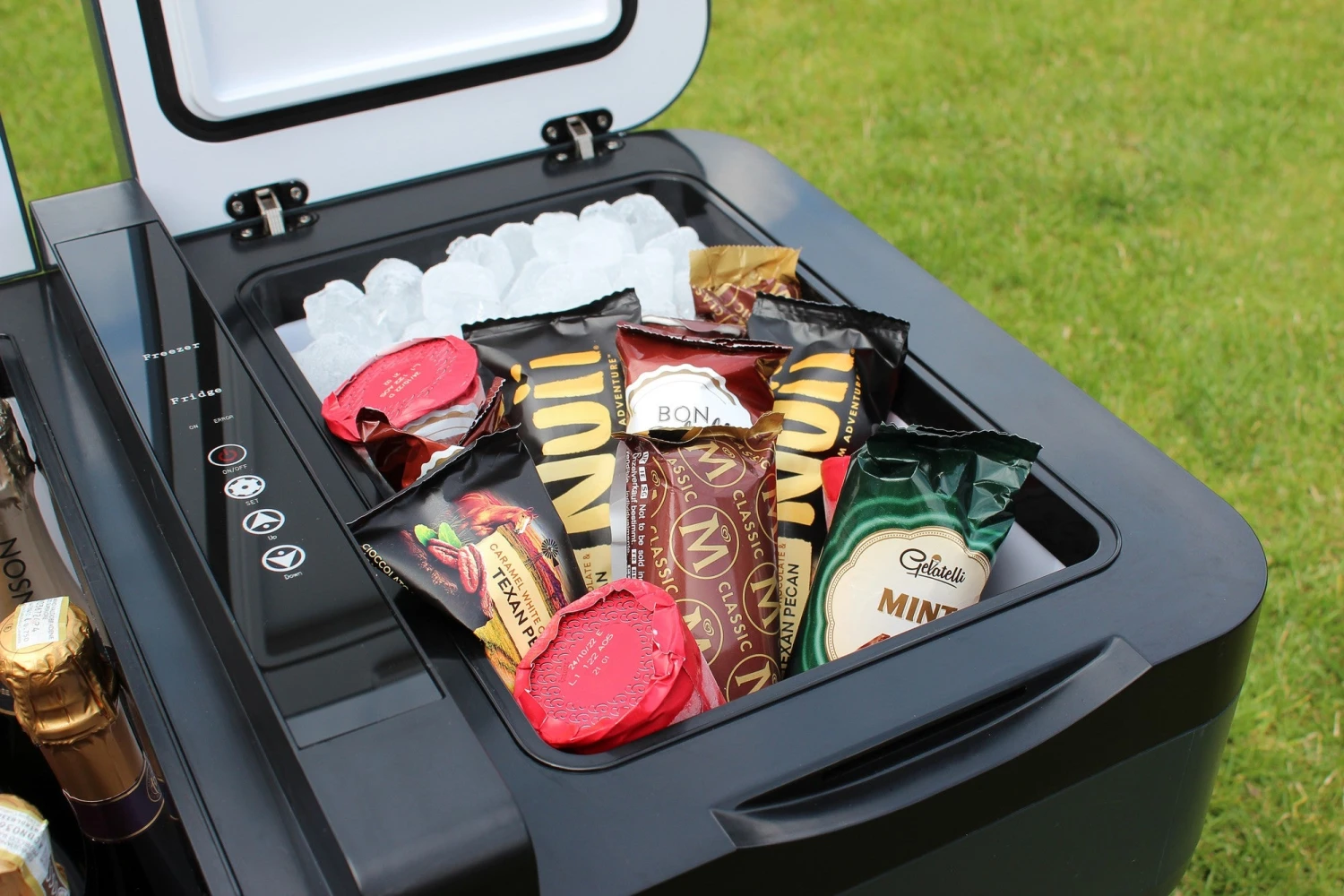 The Eco Deep Extreme Compressor Cooler 35L is a larger twin compartmented compact compressor cooler & freezer with a temperature range of 0C° to 10C° 25L cooler Zone & a -10C° to -20C° 10L freezer. It can be pre-cooled in the home before travel or on the campsite via a 230V adaptor with both UK and EU Plugs. Suitable for leisure automotive and camping applications.